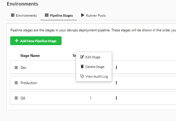 1. Go to **Environments** and click on **Pipeline Stages** tab